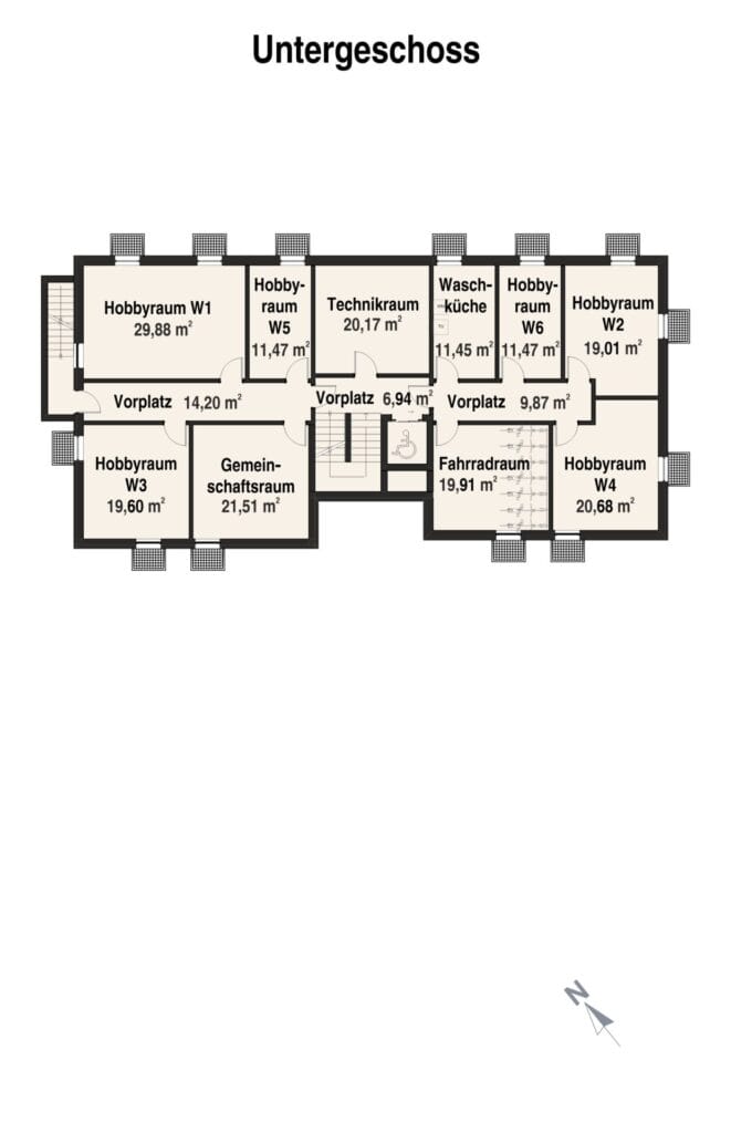 Alle Wohnungen sind rollstuhlgängig konzipiert und dank dem Lift barrierefrei erreichbar. Zu jeder Einheit gehört ein grosszügiger Keller.