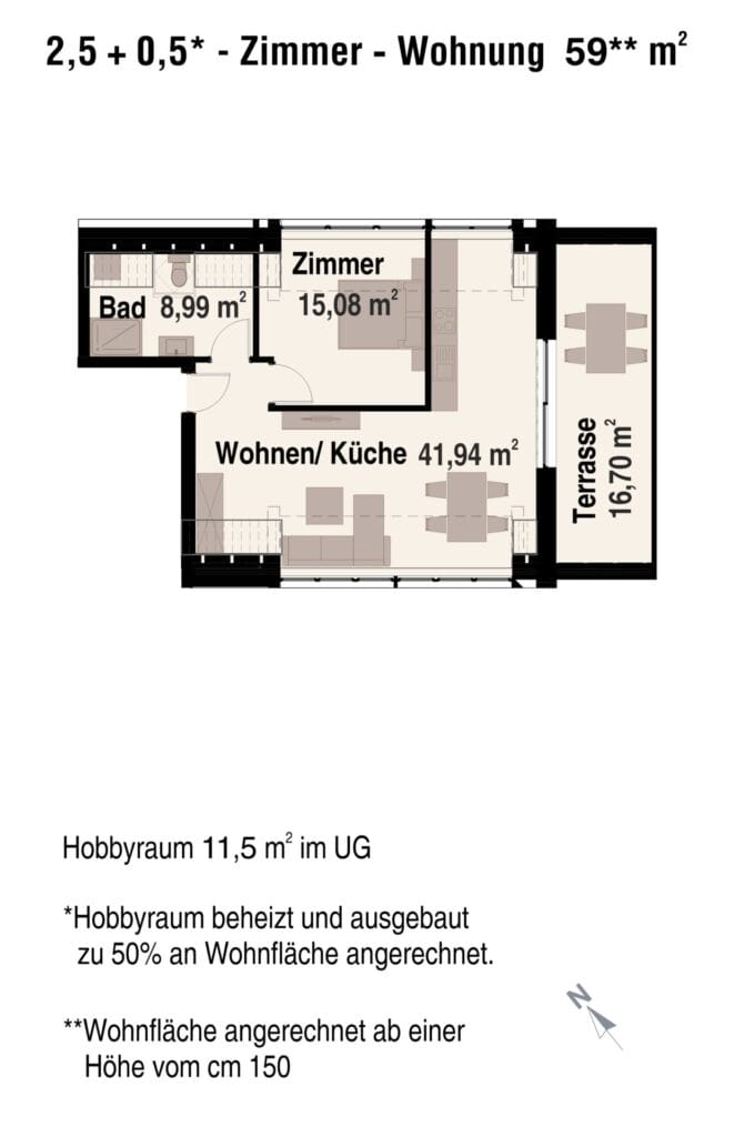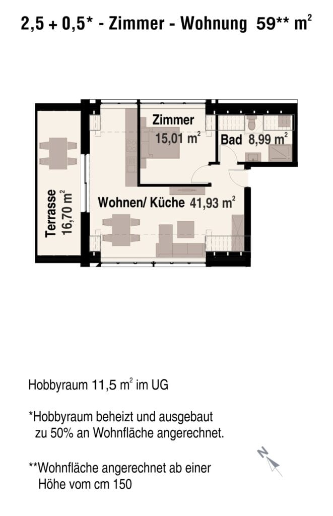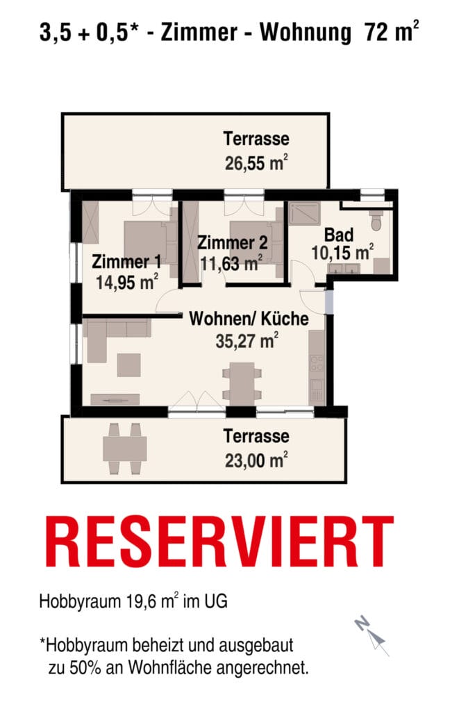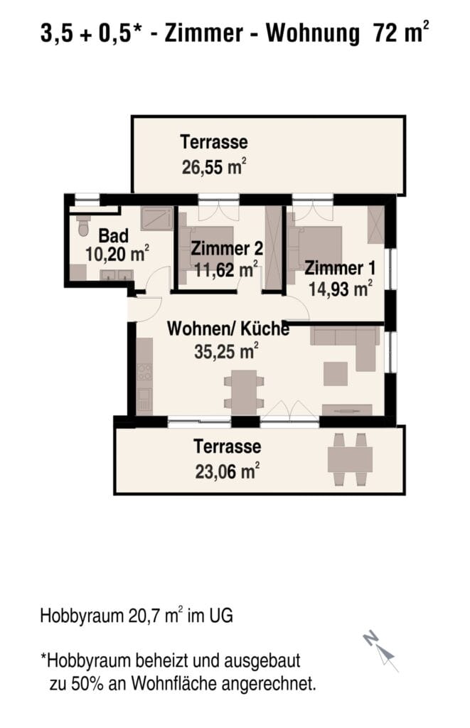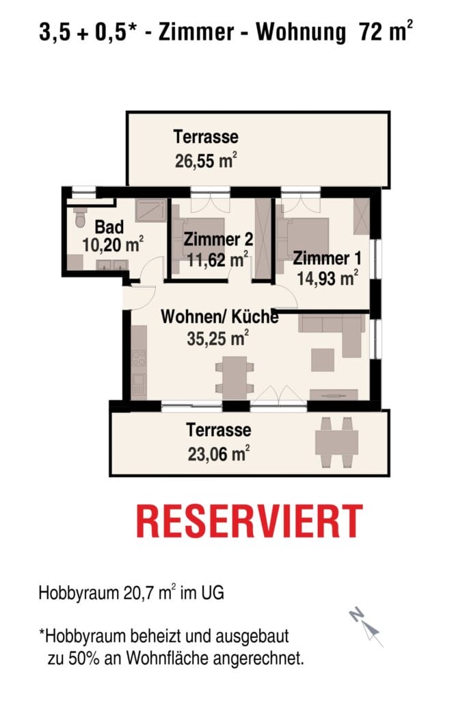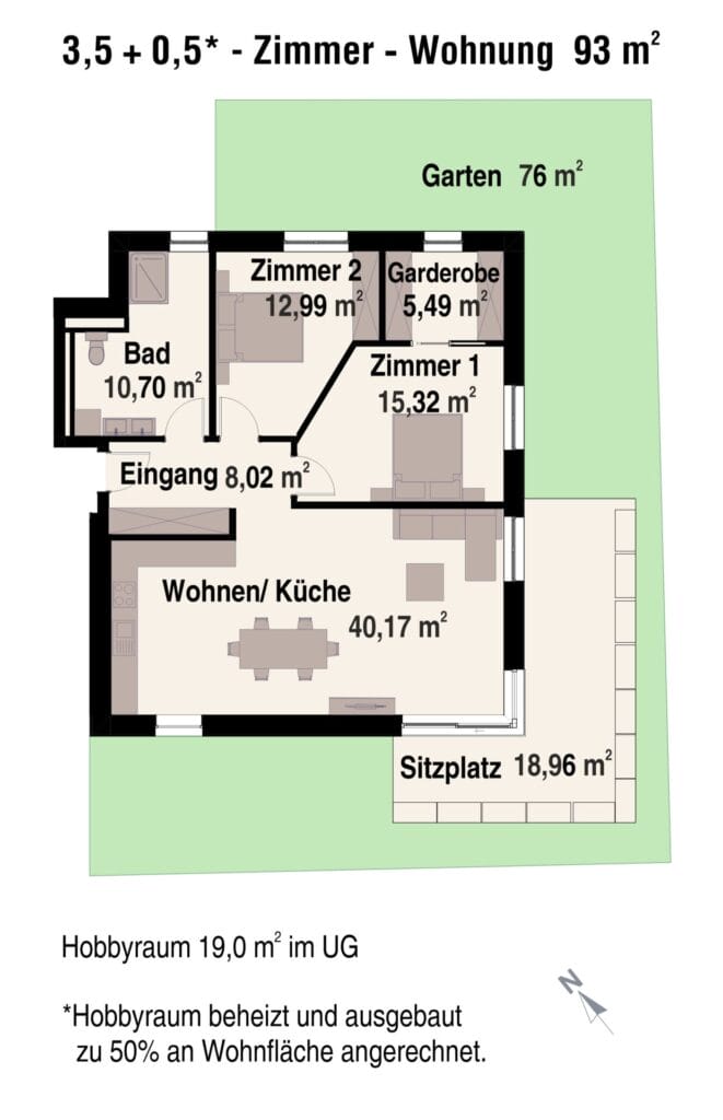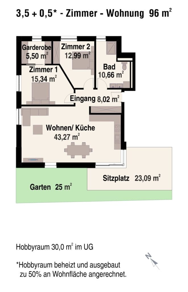 Wohnung | Zimmer | Wohnfläche | Garten | Sitzplatz | Terrasse | Hobbyraum | Parkplatz | Preis |