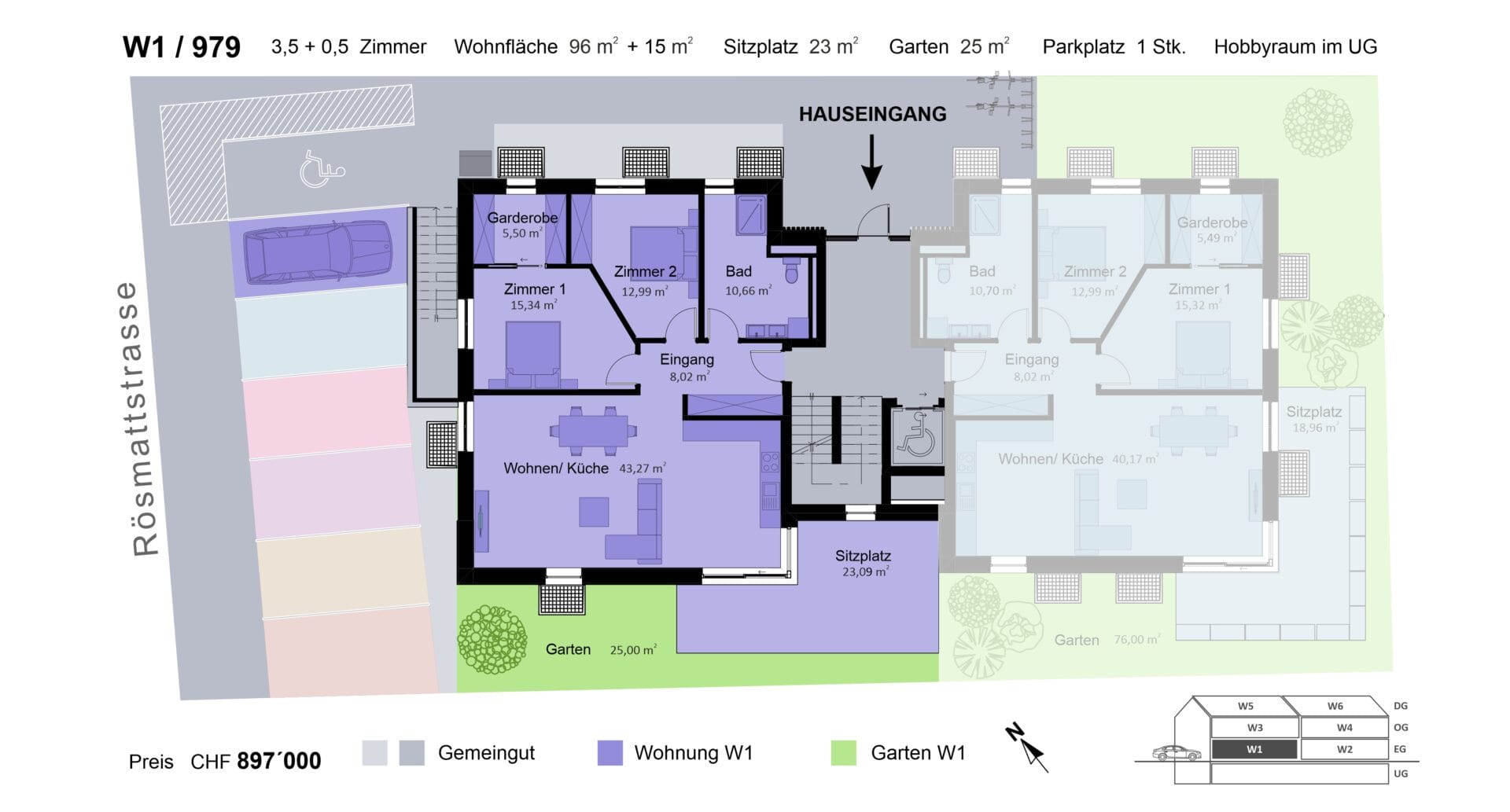 Das barrierefreie Gebäude mit Lift ermöglicht komfortables Wohnen bis ins hohe Alter. Küche, Badezimmer, Grundriss und Materialwahl werden individuell und gemeinsam mit dem Planungsteam auf die persönlichen Wünsche der künftigen Bewohner abgestimmt.